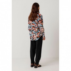 Une chemise ample, plus longue à l'arrière, avec un col classique, des manches longues à poignets boutonnés et une fermeture boutonnée sur le devant, agrémentée de poches plaquées sur la poitrine. Elle allie confort, imprimé floral original et design très pratique : un indispensable de la garde-robe.