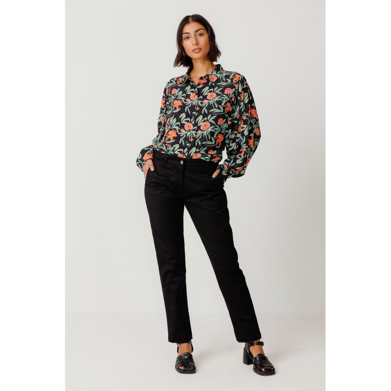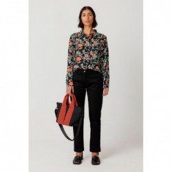 Chemise à coupe droite, col classique, manches chauve-souris et fermeture boutonnée. Un look élégant avec un imprimé floral multicolore.