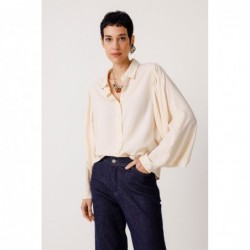 Chemise à coupe droite avec col chemise, manches chauve-souris et fermeture boutonnée sur le devant, pour un look moderne et élégant.