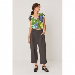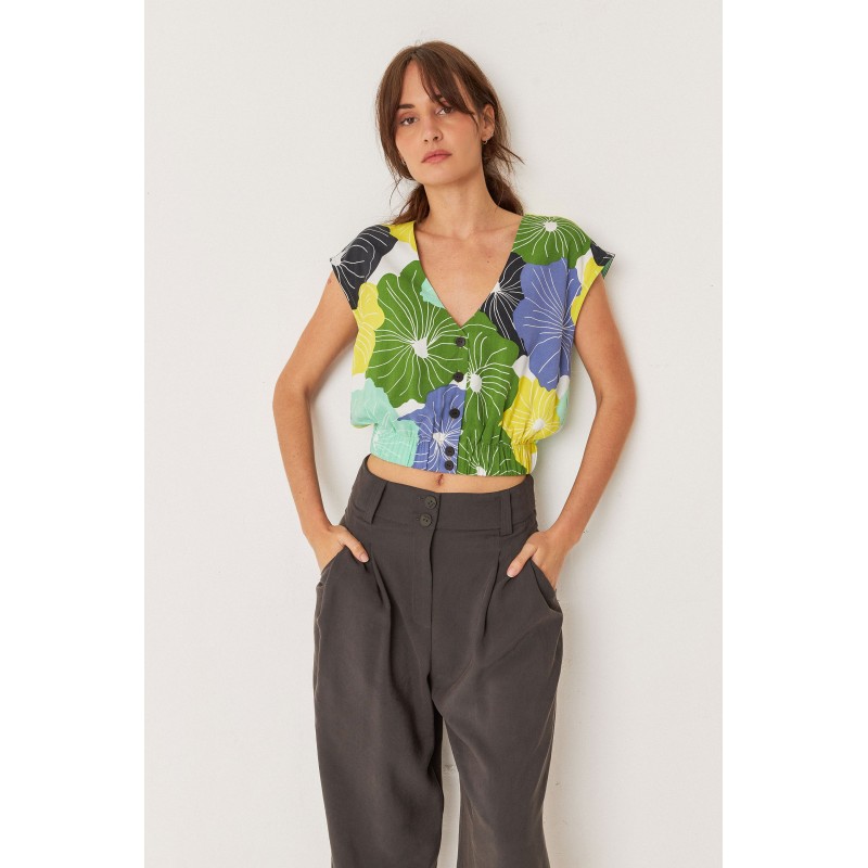 Chemise sans manches avec col en V et taille élastique. Fermeture boutonnée sur le devant.