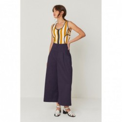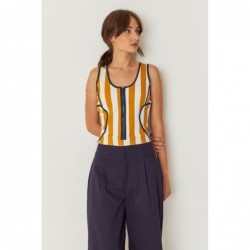 Haut ajusté sans manches, à col rond plongeant et surpiqûres contrastées. Fermeture zippée sur le devant.