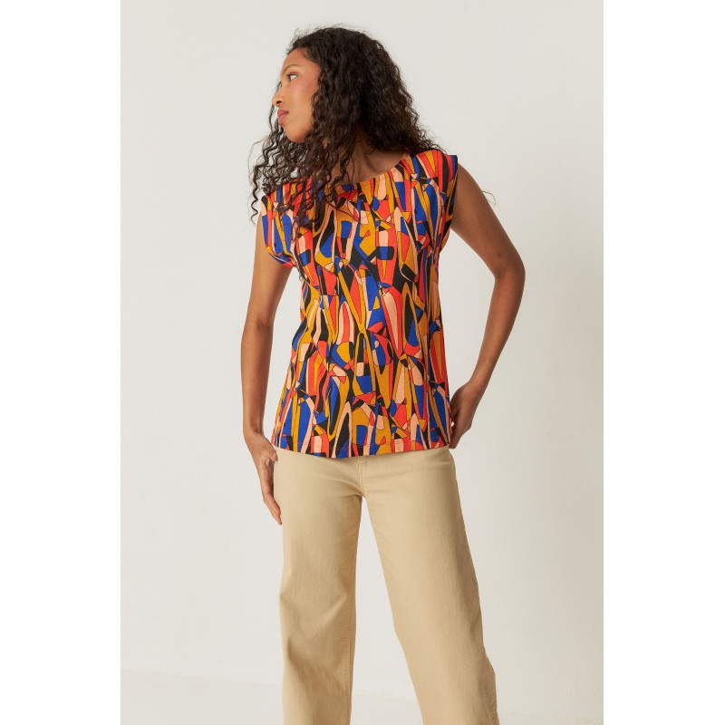 T-shirt sans manches à col bateau et coupe droite en coton biologique stretch.