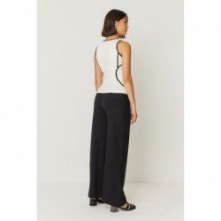 Haut ajusté sans manches, à col rond plongeant et surpiqûres contrastées. Fermeture zippée sur le devant.