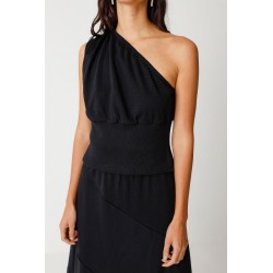 Top asymétrique à une épaule en coton biologique, coupe ajustée. Orné d'un pli à l'épaule et d'une large bordure côtelée à la taille. Fabriqué en Inde.