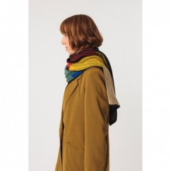 Écharpe rectangulaire multicolore en tricot de coton biologique certifié GOTS. Dimensions : 180 x 55 cm.