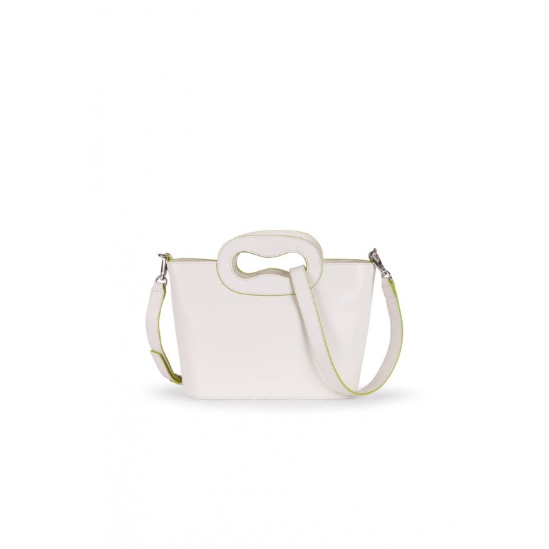 Sac cabas en cuir avec fermeture zippée et bandoulière amovible et réglable. Entièrement doublé, il possède une poche intérieure. Dimensions : 30 x 18 cm.