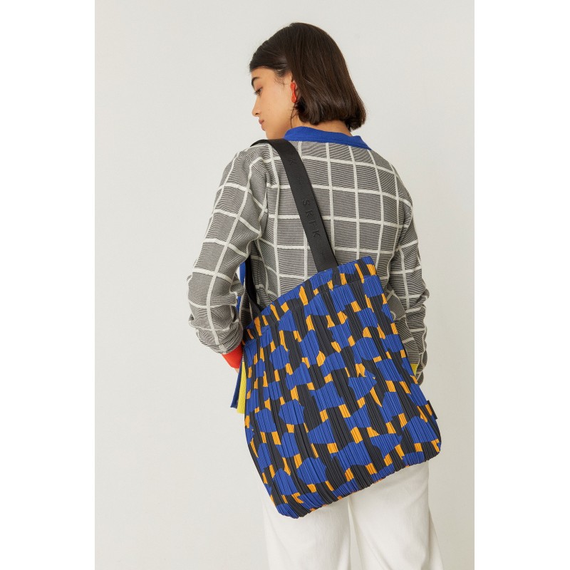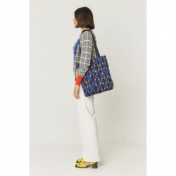 Sac cabas en tissu plissé imprimé avec deux anses. Entièrement doublé et doté d'une fermeture à pression. Dimensions : 30 x 40 cm.
