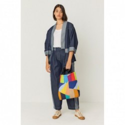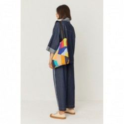 Sac cabas en tissu plissé imprimé avec deux anses. Entièrement doublé et doté d'une fermeture à pression. Dimensions : 30 x 40 cm.