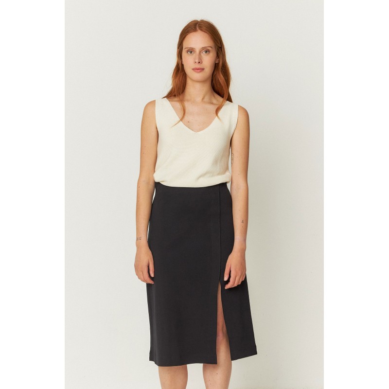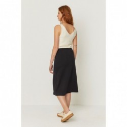 Jupe évasée sous le genou avec taille élastique et fente sur le devant.