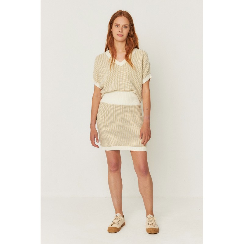 Jupe crayon midi en maille de coton biologique avec taille élastique.