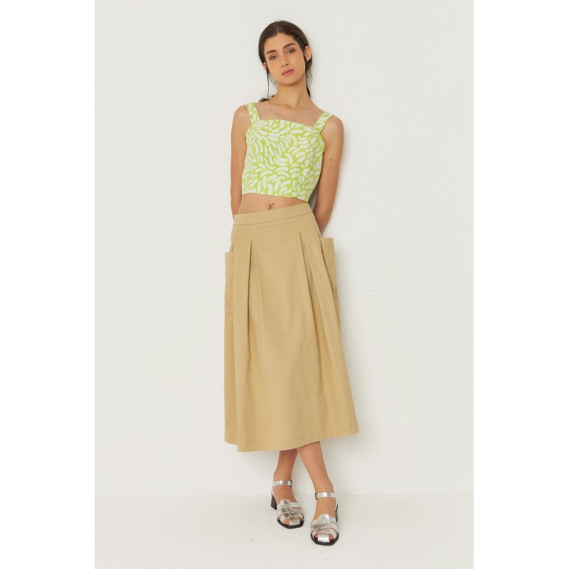 Jupe midi évasée avec poches plaquées sur les côtés.