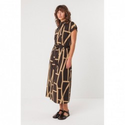 Jupe midi droite portefeuille avec poches latérales, fermeture zippée sur la couture latérale et taille nouée.