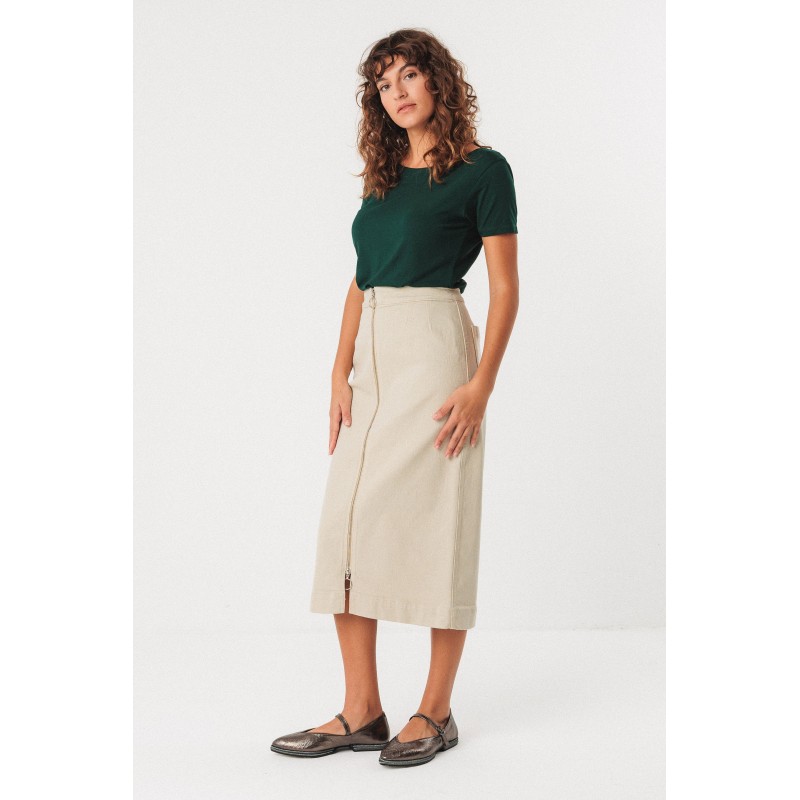 Jupe crayon midi avec fermeture zippée sur le devant.