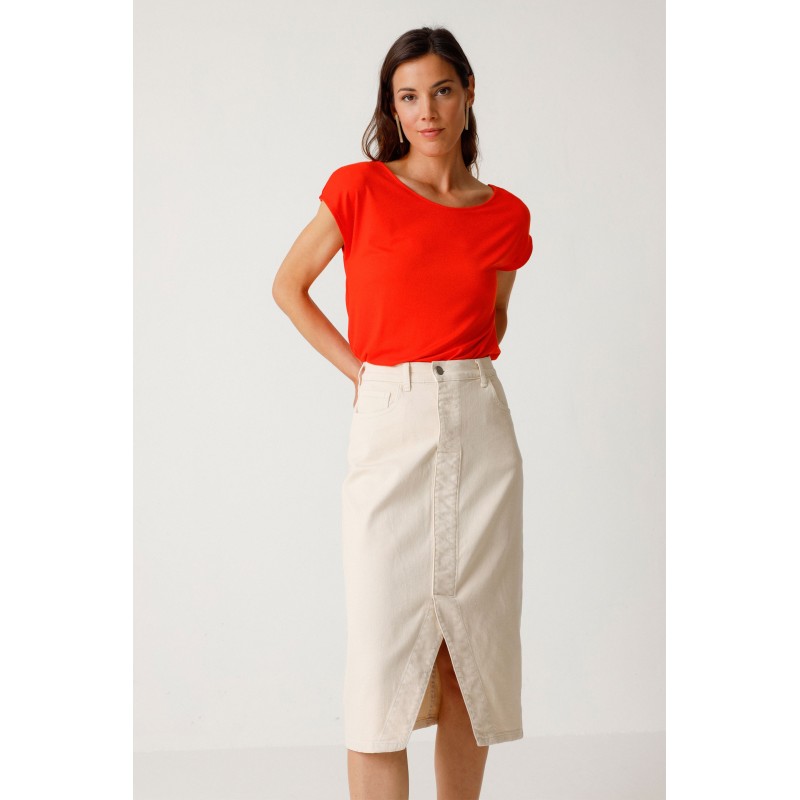 Jupe crayon mi-longue en coton biologique, modèle Aintzane