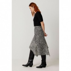 Jupe asymétrique à fermeture éclair au dos, ornée d'une bordure contrastante à l'intérieur de la ceinture et confectionnée en tissu jacquard. Une pièce moderne et originale pour compléter votre garde-robe.