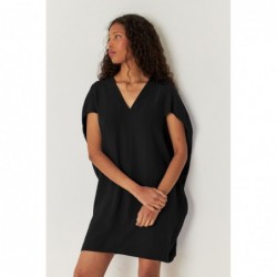 Robe sans manches avec un col en V et une coupe droite au dessus du genou.