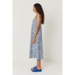 Robe midi évasée sans manches avec col en V en coton biologique extensible.