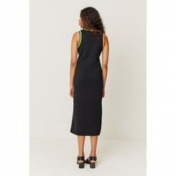 Robe midi sans manches en jersey de coton biologique. Elle présente un décolleté en V profond et une bordure côtelée multicolore.