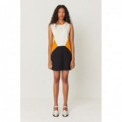 Robe sans manches en jersey de coton biologique. Avec sa jupe mi-longue et son encolure ronde, elle présente des couleurs contrastées. Facile à enfiler.