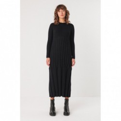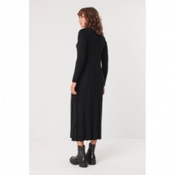 Robe longue évasée en maille côtelée. Confectionnée en maille semi-épaisse, elle présente un col montant et des manches longues.