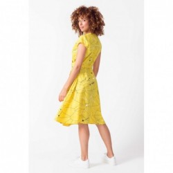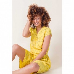 Notre robe exclusive à imprimé « kiski » jaune vif apporte la touche finale parfaite à cette robe portefeuille. Ajustez-la à votre taille et rayonnez toute la journée.
