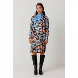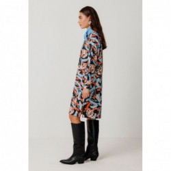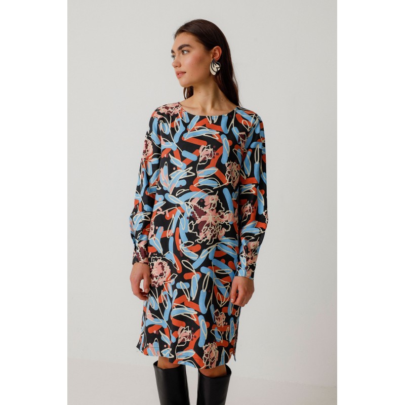 Robe droite facile à porter, arrivant au-dessus du genou, à manches longues, fentes latérales et détails plissés aux poignets. Imprimé floral multicolore.