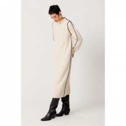 Robe midi en maille à manches longues, col montant et finitions contrastées. Coton biologique certifié GOTS.