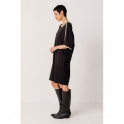 Robe ample arrivant aux genoux, à col rond et manches chauve-souris, conçue pour être enfilée facilement. Elle est ornée d'une goutte d'eau au dos.