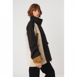 Manteau portefeuille ample en laine mélangée de différentes matières et couleurs. Fermeture zippée sur le devant.