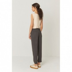 Pantalon chino longueur cheville avec taille élastique ajustable et cordon de serrage. Poches latérales.