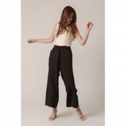 Pantalon palazzo avec taille élastique, ceinture à nouer et poches avant.