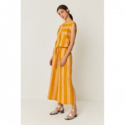 Pantalon palazzo avec taille élastique, ceinture à nouer et poches avant.