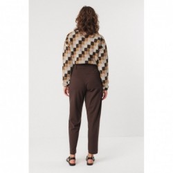 Pantalon coupe carotte longueur cheville avec poches latérales et fermeture zippée latérale.