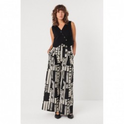 Pantalon palazzo taille haute en coton biologique et polyester recyclé jacquard. Fermeture zippée sur le devant et poches latérales.