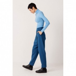 Pantalon carotte à taille standard, poches en biais et fermeture éclair sur le côté. Une version moderne d'un style classique.