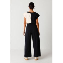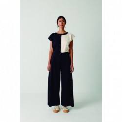 Pantalon en coton biologique certifié GOTS. Jambes extra-larges avec plis croisés sur le devant. Fermeture éclair et bouton. Fabriqué en Inde.