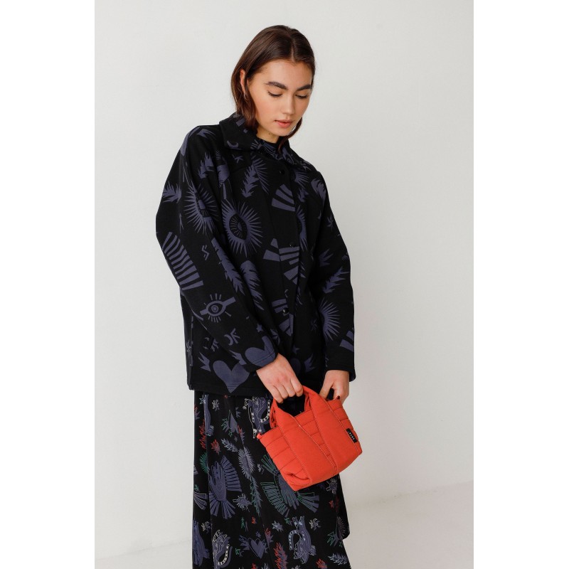 Sac en polyester recyclé avec bandoulière réglable et amovible, poche intérieure zippée et doublure imprimée, mesurant 200 x 140 x 80 mm.