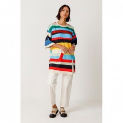 T-shirt long et ample à col rond, manches 3/4 et ouverture sur le devant, dans un style décontracté et tendance. Collaboration avec Grems.