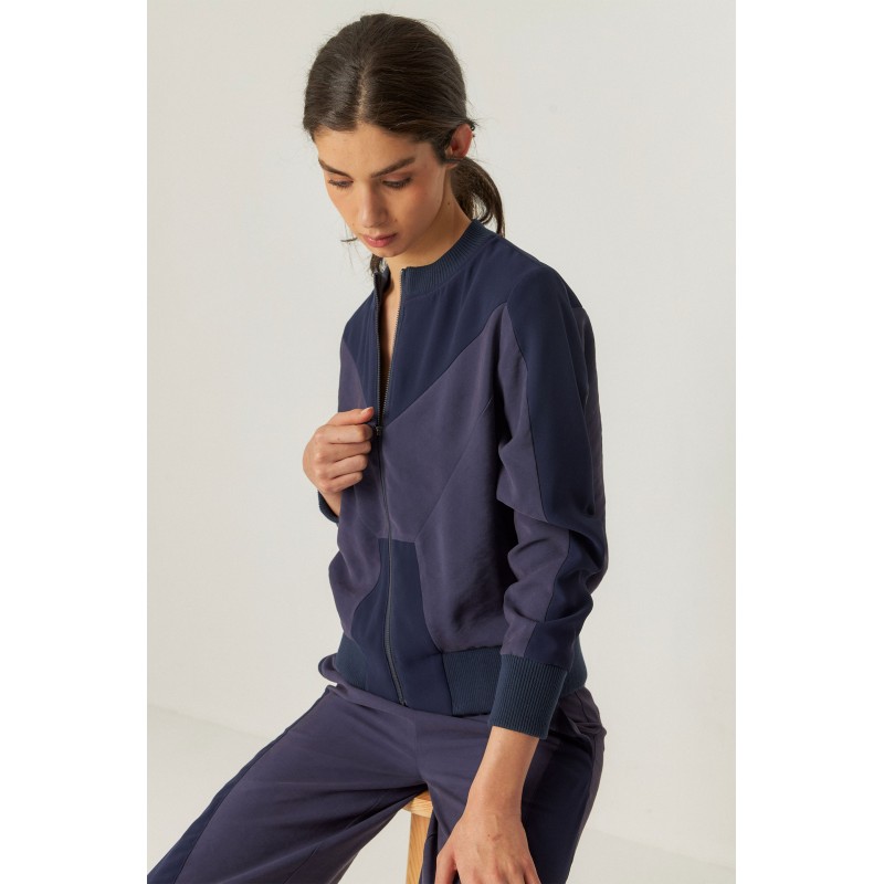 Blouson aviateur décontracté. Entièrement doublé, il présente des empiècements de couleur contrastée. Ce modèle présente un col haut côtelé, des poches avant et une fermeture zippée.
