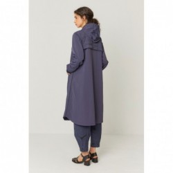 Imperméable long et évasé avec capuche, épaules tombantes et poches passepoilées. Entièrement doublé, il est doté d'une fermeture zippée sur le devant et de fentes latérales zippées.