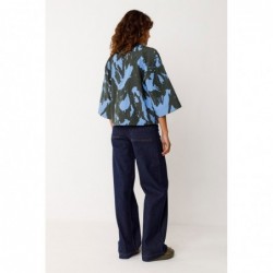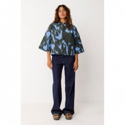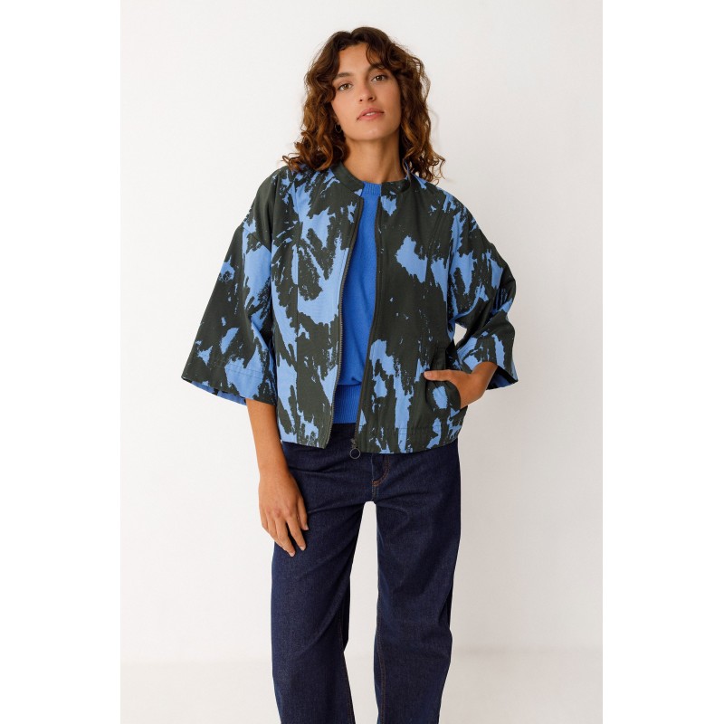 Blouson aviateur oversize à col montant et manches 3/4 avec poches avant.