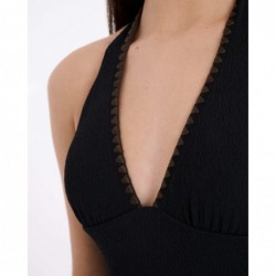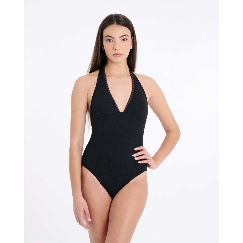Este bañador de una pieza destaca por su diseño limpio y femenino, realzado con un delicado detalle bordado en el escote. Su silueta estructurada ofrece un ajuste cómodo y favorecedor, ideal para quienes buscan elegancia con un toque artesanal. Una prenda que combina sencillez y distinción en equilibrio perfecto.