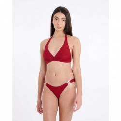 El top del modelo Kea se presenta en formato halter, con lazos de ajuste al cuello y a la espalda. Confeccionado en tejido con textura de rayas en relieve, aporta estructura visual sin recurrir al color. Su diseño equilibra sujeción, comodidad y un acabado cuidado que aporta discreción y carácter.