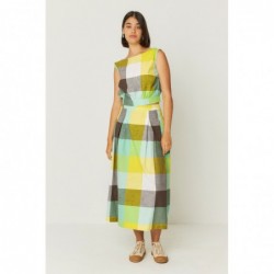 Short sleeveless boat-neck shirt. Slim fit and buttoned back. Checkered print.