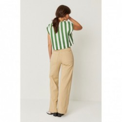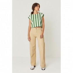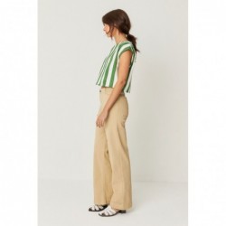 Short sleeveless shirt with a round neck. Small slit with button closure in the back.