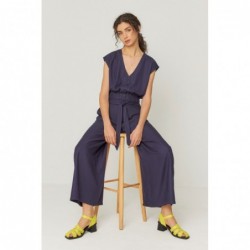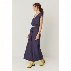 Sleeveless shirt with a V-neck and elastic waist. Button-down front closure.