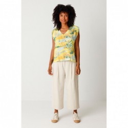 Ecovero sleeveless viscose blouse with a comfortable, loose fit and an elegant V-neck. Features shoulder pads and a floral print.