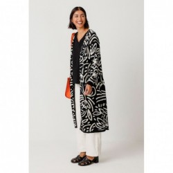 Long-sleeved jacquard maxi cardigan with side pockets and no closure. A warm and stylish piece ideal for layering. GOTS certified organic cotton.