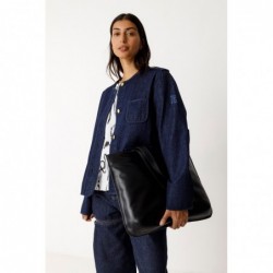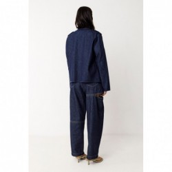 Short organic cotton denim jacket with round neck, patch pockets and buttoned front closure.