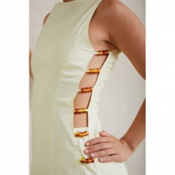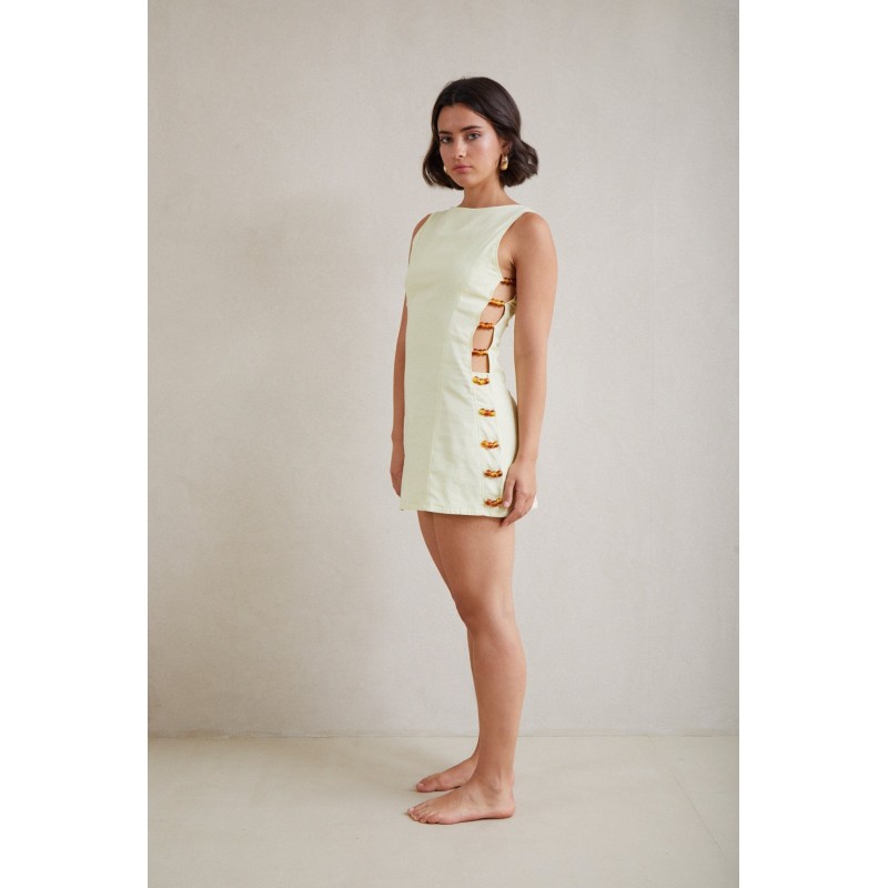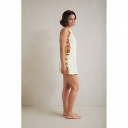Linen mini dress. U-neck with side slits and decorative beads. Matching 100% cotton lining. Invisible zipper closure. Linen mini dress with a U-neck, side slits, and beaded details. Invisible zipper closure. Ideal for a fresh, elegant look. Made with linen for comfort and durability. Enjoy a unique style with the Bora Mini Dress. Choose your usual size. The model is 172 cm tall and is wearing size S. For a looser fit, it is recommended to choose a size larger than your usual size.